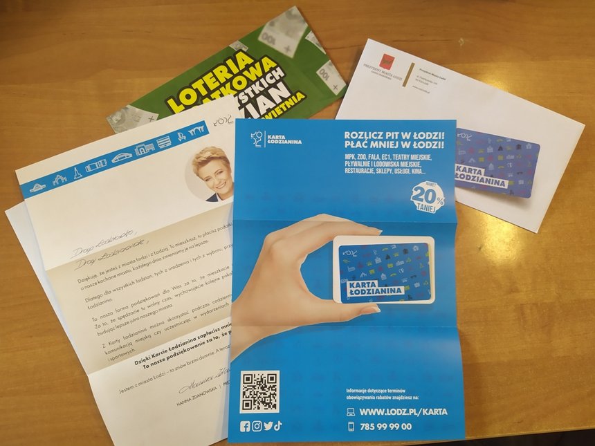 Razem z kartą w kopercie znajduje się pełna instrukcja aktywacji karty, list od Prezydent Hanny Zdanowskiej, a także ulotka informacyjna o loterii dla wszystkich mieszkańców.