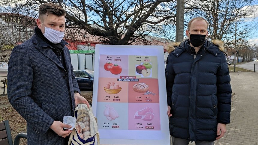 Marcin Hencz, radny Rady Miejskiej w Łodzi: – Jesteśmy z radnym Olejniczakiem po małych zakupach podstawowych produktów spożywczych. Na jednej z sesji Rady Miejskiej, która się odbyła w październiku, rozmawialiśmy o cenach i radni PiS obiecywali wtedy, że ceny będą spadać, że inflacja na pewno nie przekroczy 2,5%. Tymczasem prognozowana inflacja w 2021 roku będzie na poziomie 3,5%. I dowiedzieliśmy się ostatnio, że ceny produktów spożywczych, porównując styczeń 2021 do stycznia 2020 – to jest wzrost o 7%. Tak naprawdę, ceny energii i paliwa windują resztę cen i trudno to zrzucić na przypadki losowe. To są kwestie polityki naszego państwa i pewnych zaległości.