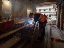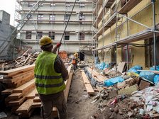 Cezary Kozłowski, kierownik budowy mówi: – Trwają zaawansowane prace konstrukcyjne – wymieniamy stropy, wzmacniamy ściany. Mniej więcej za kwartał rozpoczniemy już prace wykończeniowe we wnętrzach. Wyremontowaliśmy już prawie cały dach, pozostała nam jeszcze jedna połać, którą zrobimy przed zimą. Natomiast za 2-3 tygodnie ustawimy rusztowania i rozpoczniemy remont elewacji frontowej.