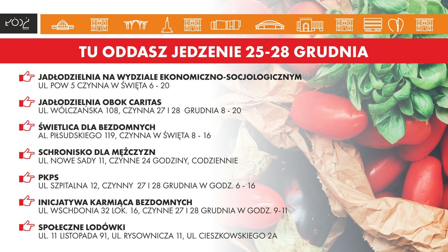 Jadłodzielnie są przy ul. POW na Wydziale Ekonomiczno-Socjologicznym oraz przy ul. Wólczańskiej obok Caritas. Dodatkowo są lodówki społeczne, chętnie żywność przyjmą także schronisko dla osób bezdomnych przy ul. Nowe Sady czy świetlica przy al. Piłsudskiego.