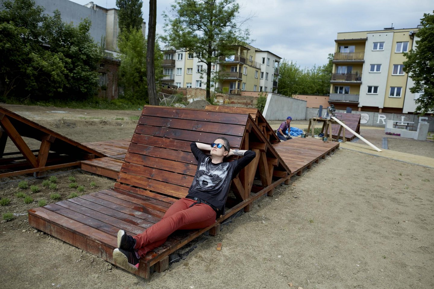 Pierwsze w Łodzi miejskie drewniane leżaki
