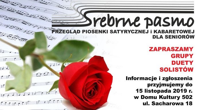Zapraszamy do udziału w pierwszej edycji Przeglądu Piosenki Satyrycznej i Kabaretowej dla Seniorów "SREBRNE PASMO". Przegląd odbędzie się 29 listopada 2019 roku w Domu Kultury „502” przy ul. Andrzeja… więcej
