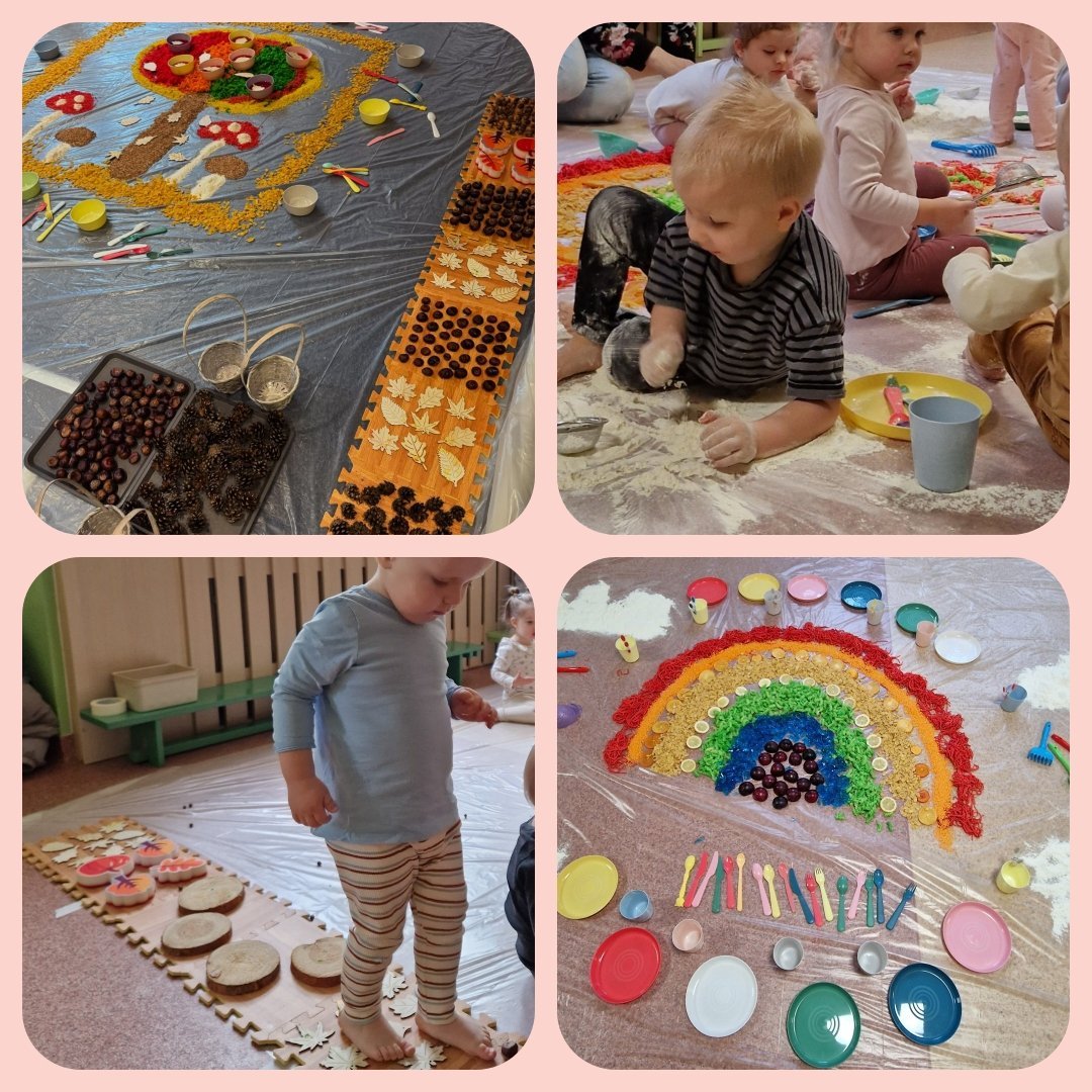 Zajęcia sensoryczne cieszą się dużym zainteresowaniem wśród naszych maluchów. Cotygodniowe spotkania pozwalają dzieciom dotykać, wąchać, smakować, oglądać różnego rodzaju materiały wykorzystywane do zajęć. Zabawy pełne kolorów, faktur i zapachów stymulują rozwój zmysłów i wyobraźni dzieci.