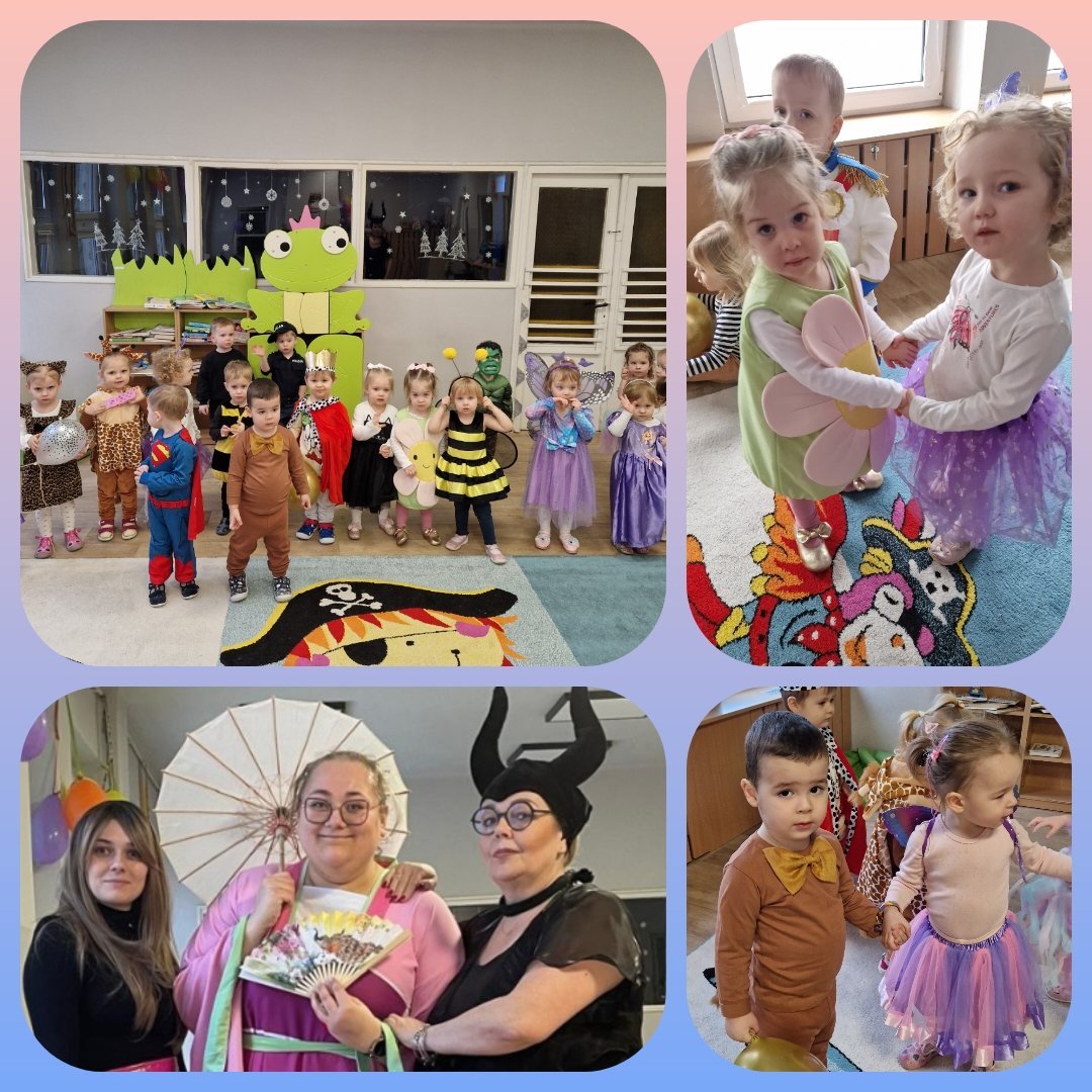 Tańce, hulańce i wesoła zabawa. Tak spędziły czas nasze maluch podczas bali karnawałowych w naszym żłobku. Na balach królowały księżniczki, superbohaterowie, zwierzątka i postacie z bajek. Już od rana słychać było wesołą muzykę a Panie opiekunki w pięknych strojach witały dzieci i wprowadzały dzieci w karnawałowy nastrój.